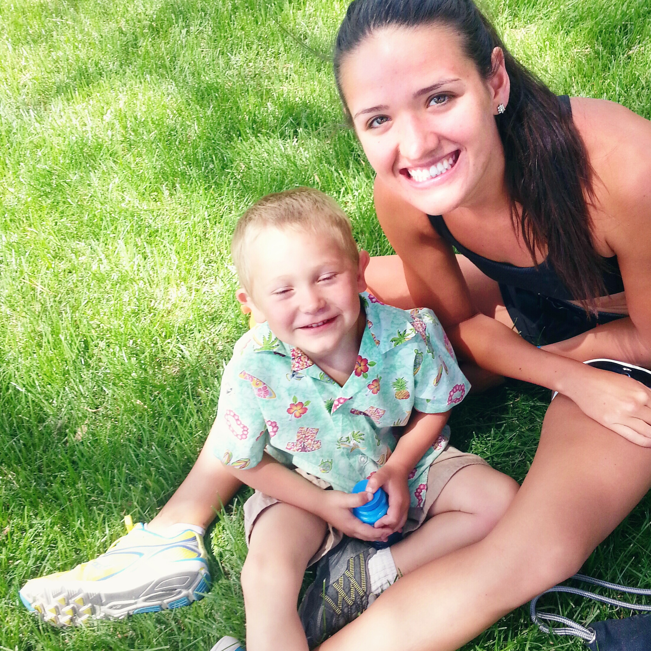 This is Kevin, he crawled into my lap while his mom and sister waited for his dad and I waited for my biker. We made a grass bracelet.